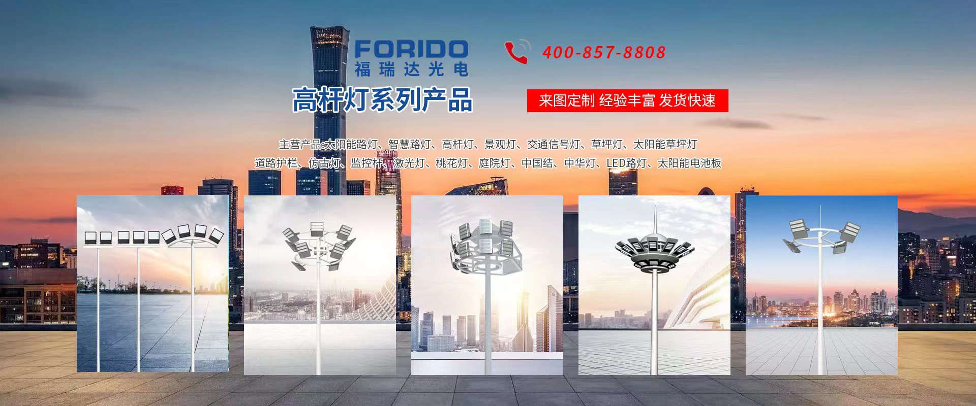 揚州福瑞達光電科技有限公司位于淮左名都歷史文化名城、中國路燈制造基地揚州市北郊菱塘工業(yè)園,公司占地面積76000平方米,注冊資金10518萬元,擁有高級技術(shù)嫻熟的員工280多人,擁有大型折彎機、激光切割、數(shù)控注塑機、壓鑄機、自動埋弧焊、氣焊、彩色粉末靜電噴塑等大型自動化設(shè)備,我公司是一家集設(shè)計、研發(fā)、生產(chǎn)、銷售、施工安裝服務(wù)為一體的戶外交通照明產(chǎn)品制造商,主要生產(chǎn)智慧路燈、太陽能路燈、LED路燈、高桿燈、景觀燈、交通信號燈、交通標(biāo)志牌、通信鐵塔、路跨鋼結(jié)構(gòu)、公交站臺、太陽能光伏組件、景點亮化、樓宇亮化工程的設(shè)計施工等。公司秉承開拓創(chuàng)新、銳意進取、精誠服務(wù)的企業(yè)精神,堅持以“誠信為本、技術(shù)為先、服務(wù)是金”的合作理念,我們憑借先進的制造工藝、優(yōu)質(zhì)的產(chǎn)品質(zhì)量、合理的市場價格和完善的售后服務(wù)贏得了廣闊的市場和客戶的信賴。 我公司已通過ISO9001質(zhì)量體系認(rèn)證、ISO14001環(huán)境管理體認(rèn)證,CQC產(chǎn)品認(rèn)證,中國節(jié)能產(chǎn)品認(rèn)證,通過“CCC”強制性產(chǎn)品認(rèn)證,具有市政總承包,照明,交安,設(shè)計等資質(zhì)···